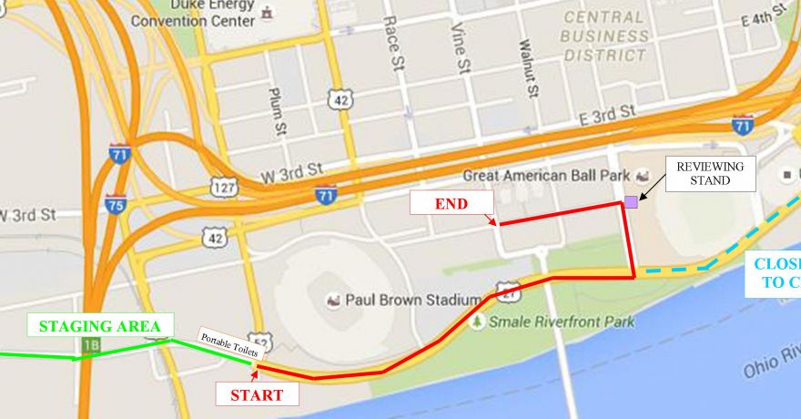 Rain, snow or shine, this annual parade that started in 1967 has never cancelled! The route begins at Mehring Way and Central Avenue (corner of Paul Brown Stadium) and ends at Freedom Way and Rosa Parks Street.