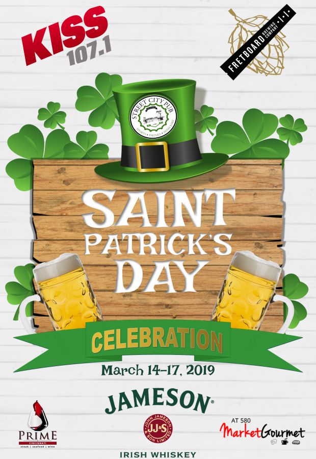 Sunday hangout with Kiss 107.1 from 3-5pm! Josh Martinez will be broadcasting LIVE in Street City Pub, to celebrate the holiday and handing out awesome St. Patty’s Day swag!